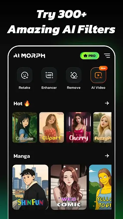 AI Morph MOD APK stimulates creativity by turning its imaginative ideas into visuals. You can picture your persona in an anime way or maybe try out different art filters. I truly love how it expresses your thoughts easily! photo editor, a fun tool with a charming way of bringing your imagination to life in seconds.