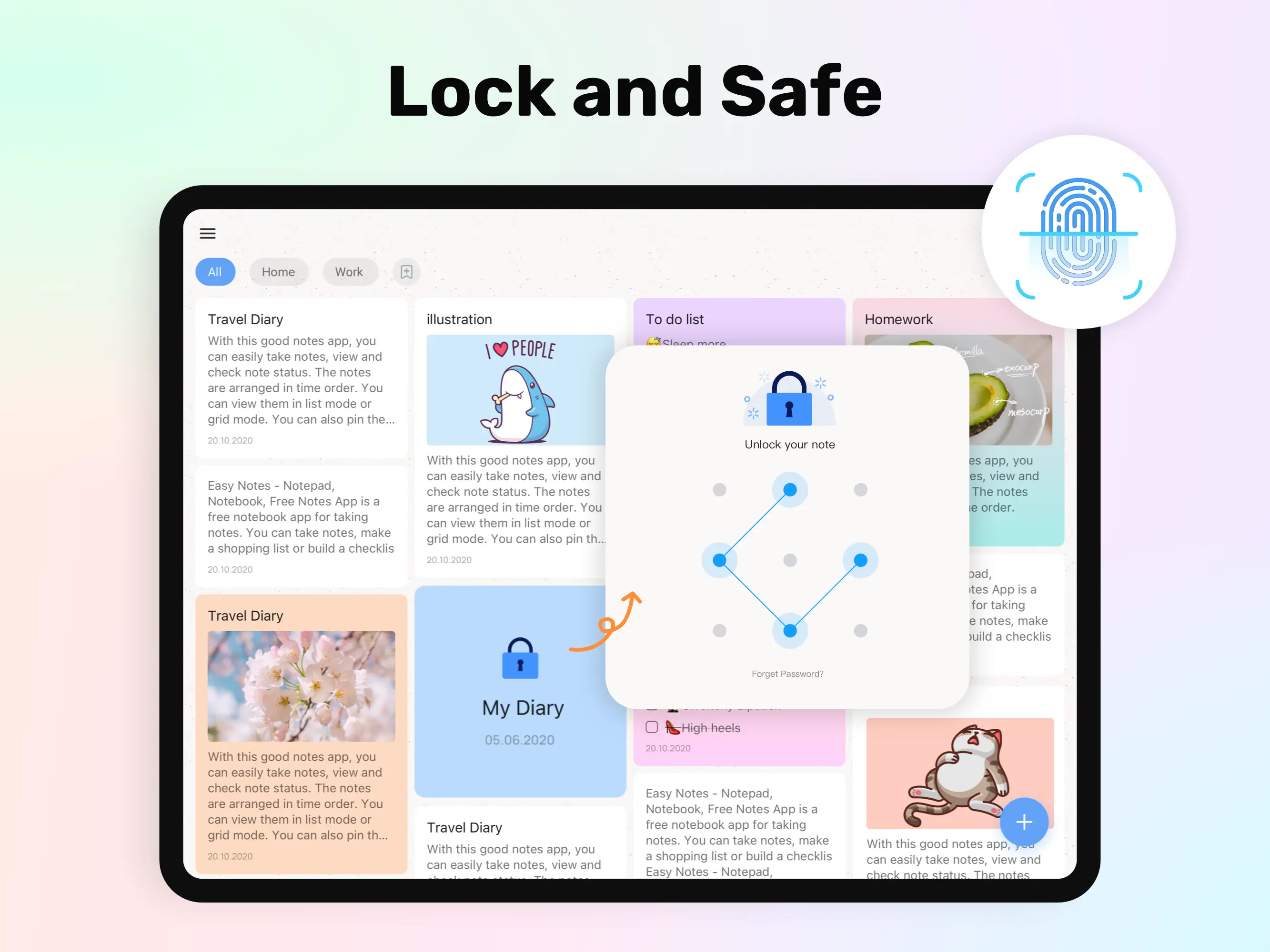 plan out your day so that you don't overlook any essential information. Very well structured with the help of easy notes. Remember to keep your notes secure. Notepad lock has locks that can be used to keep your notes secret. In order to safeguard the notebook, the note writer with the locker can either protect an individual note pad or the entire notes category. Widget for displaying sticky notes the sticky notes widget makes it easier to jot down notes quickly. It is simple to add a note widget, and there are a variety of colour note widget themes to choose from. You can get free access to your sticky notes on the site. You may improve your productivity and clarity on tablet by personalising the sticky notes widget.