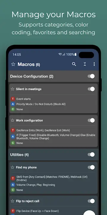 Announcing the triggerthe ultimate macro catalyst! Find endless possibilities with macrodroid! You may easily start macros with over 70 triggers. Macrodroid gives you control with cutting-edge location-based triggers like gps and cell towers and device state triggers like battery levels and app activities. We also use sensor triggers like shaking and light levels and connectivity triggers like bluetooth, wifi, and notifications to activate macros when you need them. Macrodroid unlocks your device's potential today!
