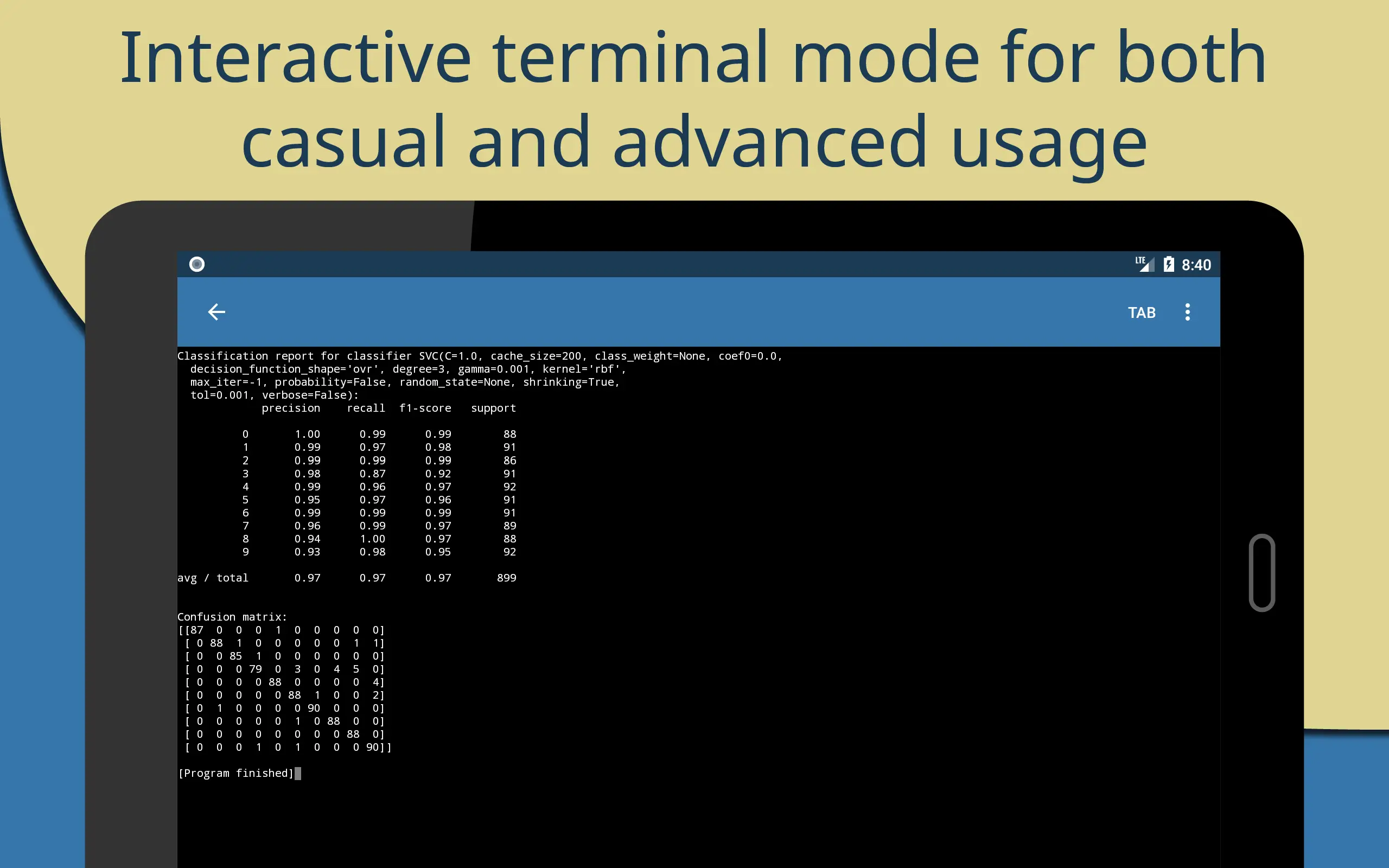 These cover basic topics like loops, lists, and functions, as well as more advanced subjects like working with files and making user interfaces. These features make it simple for students to learn new things and quickly understand them. There is a Terminal in Pydroid 3 that lets you easily run Python scripts and complicated programs at the same time. This feature is very useful for people who want to try out writing or run long scripts without turning on their computer.