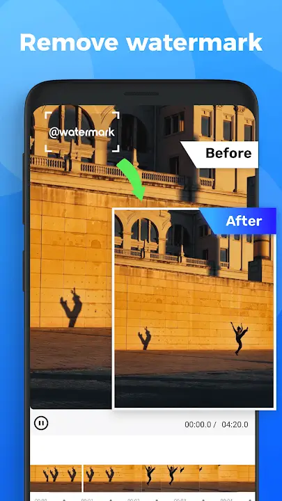 Unlike several software available on Google Play Store for watermark removal, this unique app offers you AI-powered processing. In simple words, you don’t have to use a whole lot of dedication to slowly choose the place containing that watermark over the video. The app will automatically detect the watermark and pop it up over the window so that you can click it and delete it instantly. Additionally, the place from where you’ll remove the watermark, AI will add the required color tone there to make it look like there wasn’t a single sign of a mark.