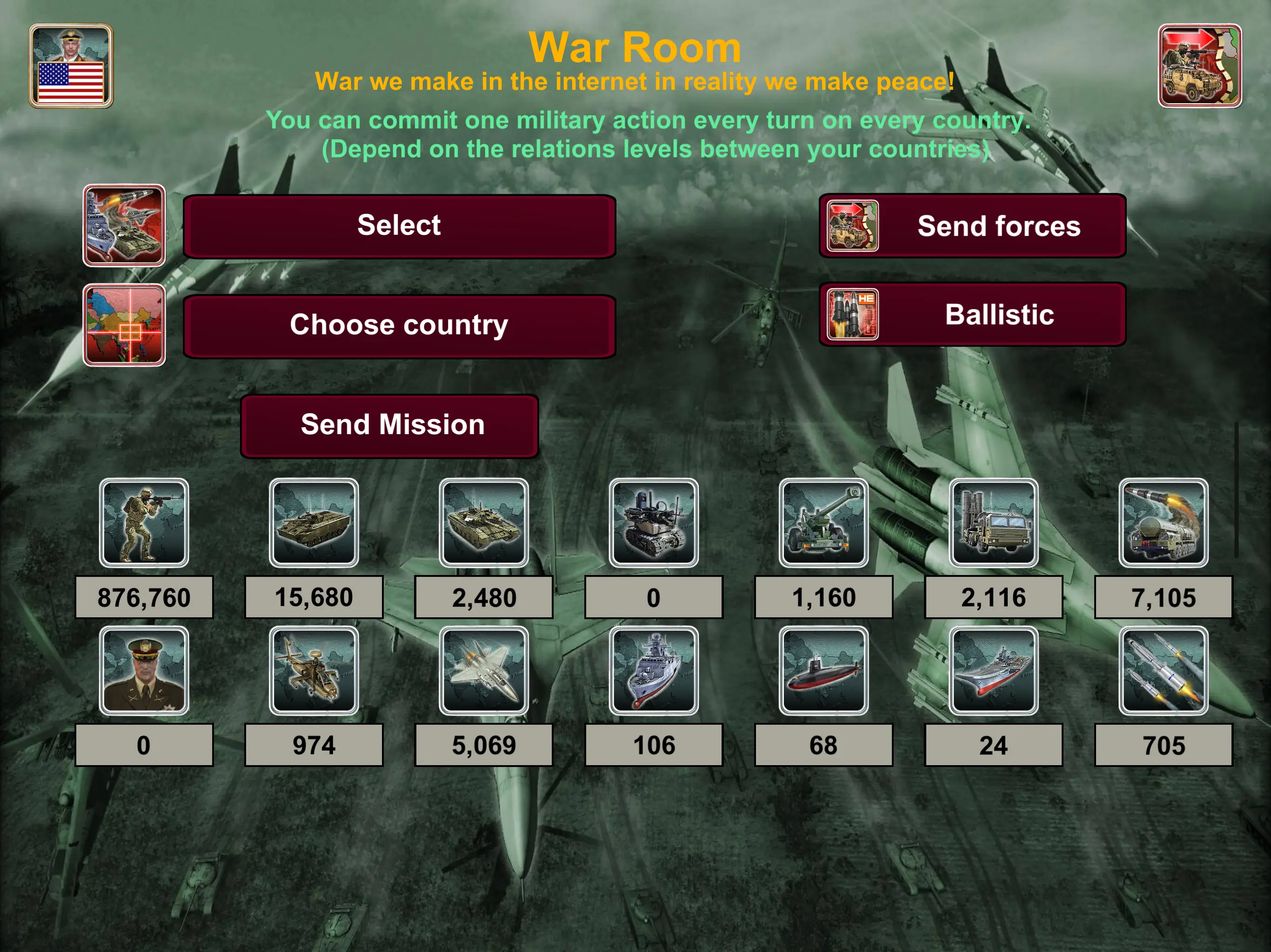 Everything is flipped around in the war zone when the dreadful fight spreads around the nation. While showing no mercy to the enemy on its way, the hell seems to be not very far from the eye of fighters which makes you one of them in the wars during your presidency of World Empire 2027. Build your army with solitude who will be ready to put their life at stake when needed to fight for life to complete missions for the sake of the nation's protection.